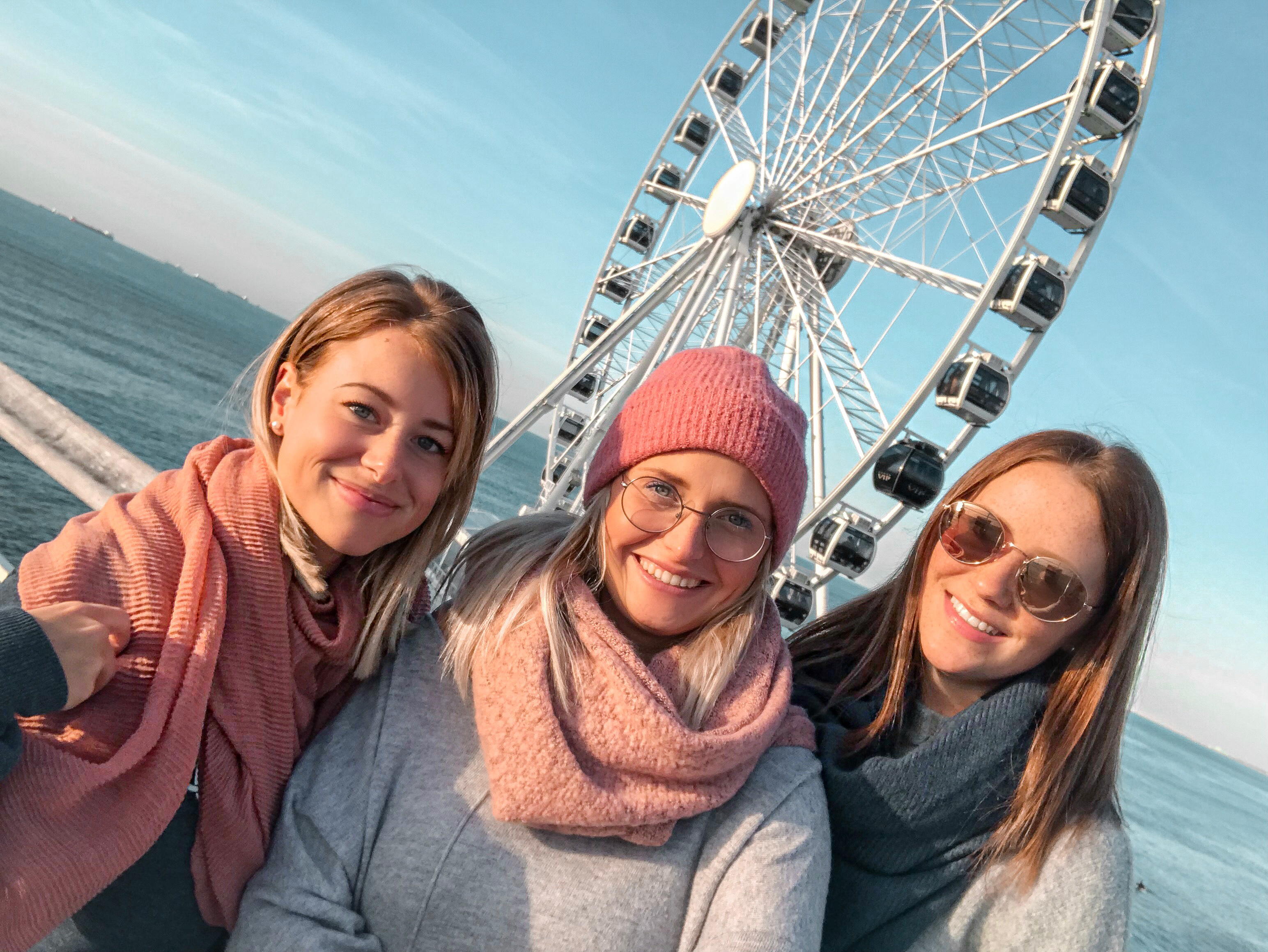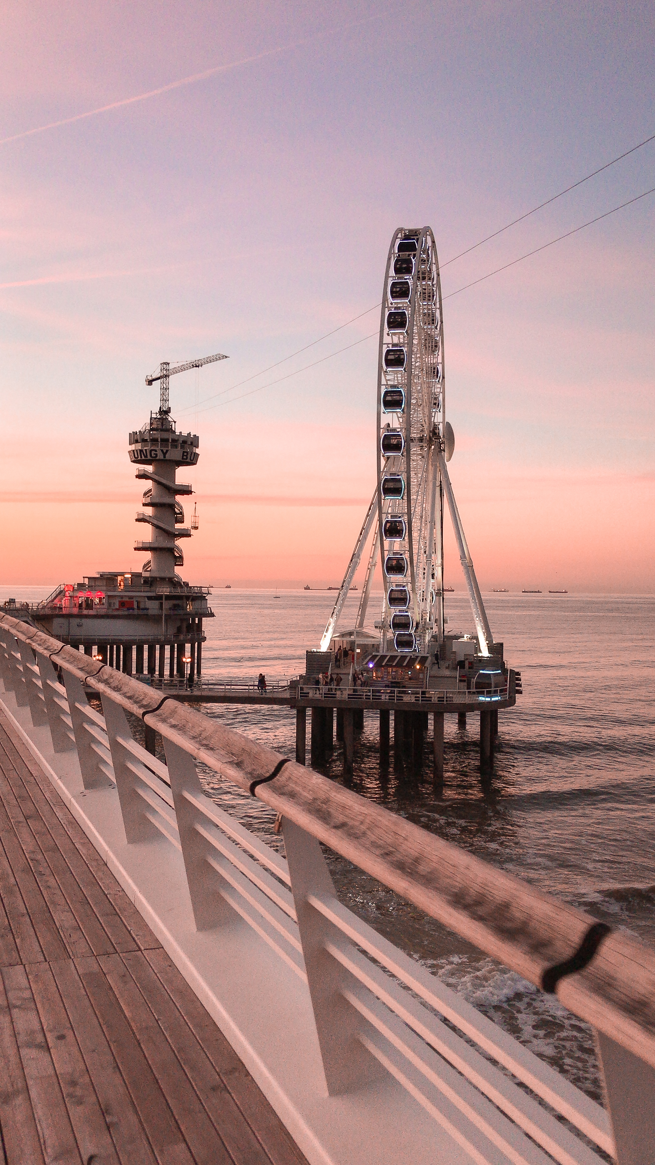 Wir sind abends bei Sonnenuntergang mit dem Riesenrad gefahren, weil wir die Stadt mit all den Lichtern bei Nacht sehen wollten. Leider waren die Gondeln verdunkelt, hatten kleine Fenster und die waren auch noch sehr schmutzig… leider hatten wir dadurch keine gute Sicht. Trotzdem war es schön, Scheveningen bei Nacht von oben zu sehen, die ganze Strandpromenade hat in hellen Lichtern gefunkelt. Euch würde ich die Fahrt am Tag empfehlen.