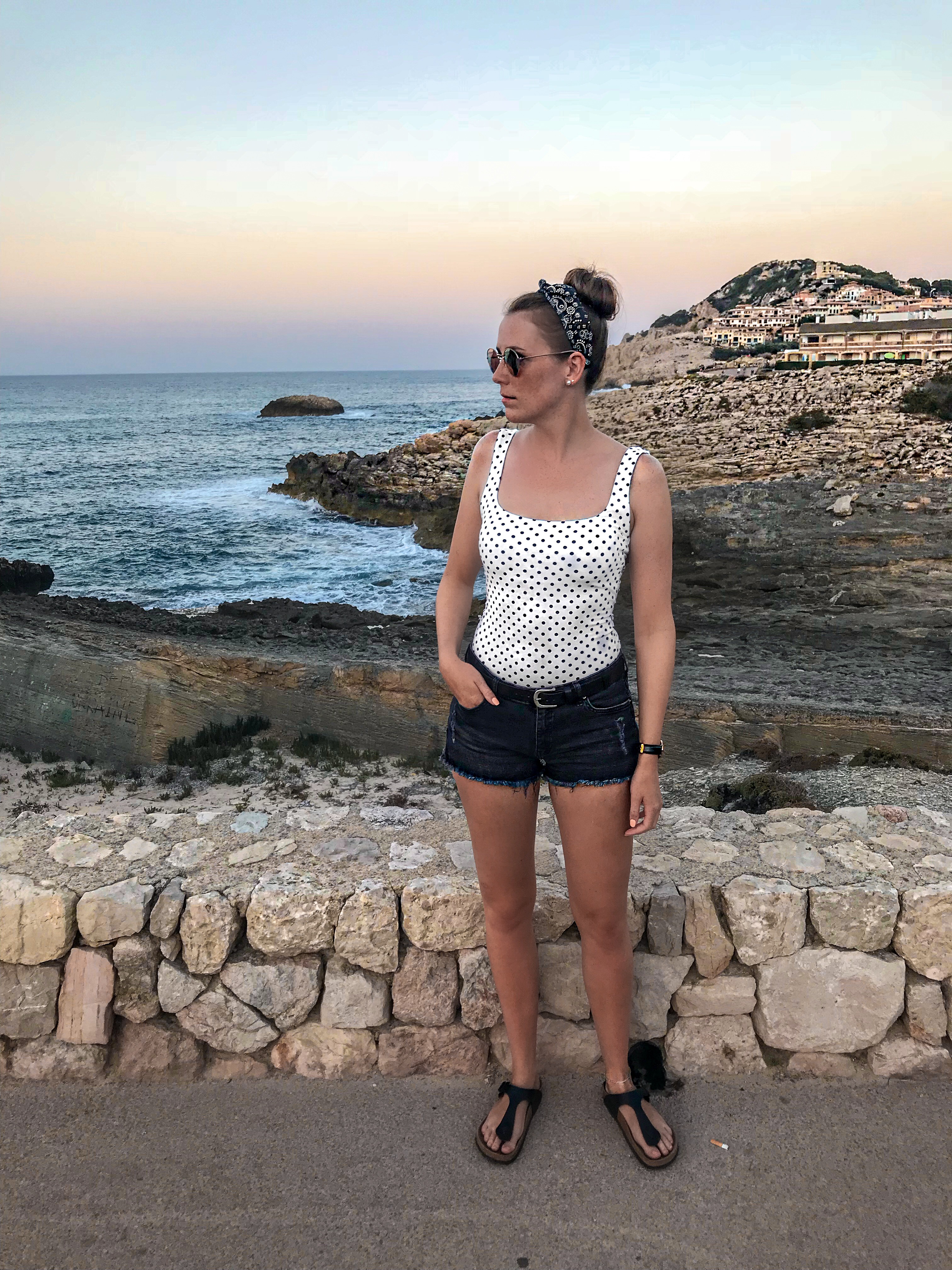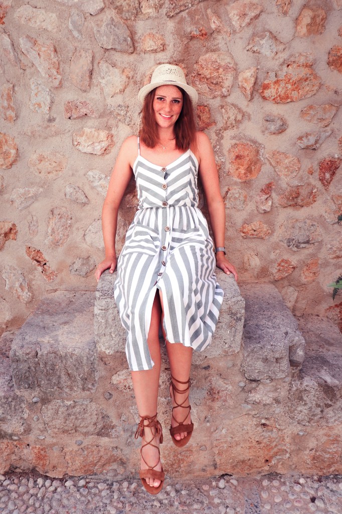 Es gibt keinen Parkplatz direkt an der Calò. Außerdem ist das Gebiet rundum die Bucht herum nur für Anwohner- und nicht für Touristen-PKW’s freigegeben. Also parkt auf dem Parkplatz an der Hauptstraße (erkennt ihr an den Auto- und Touristenmassen und ist kaum zu übersehen). Von dort aus folgt ihr einfach den Menschen, oder schaut auf googlemaps. Ihr lauft ca. 10 min. entlang der Straße in Richtung Calò des Moro. Über ein paar Treppenstufen, so ca. 120 Stück, gelangt ihr hinab zur Cala s’Almunia, einer steinigen Felsenbucht mit alten Fischerhäuschen – wirklich sehr hübsch anzusehen. Wir haben hier eine kurze Pause eingelegt. Anschließend folgt ihr ca. 5 min. einem Trampelpfad bis ihr zu dem schmalen Abstieg zur Calò des Moro gelangt. Nun müsst ihr über steile, unregelmäßige und mehr oder weniger provisorische Treppenstufen ca. 20 m hinabsteigen. Ihr Lieben, der Weg lohnt sich, die Bucht ist wirklich traumhaft schön.