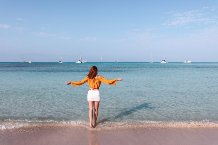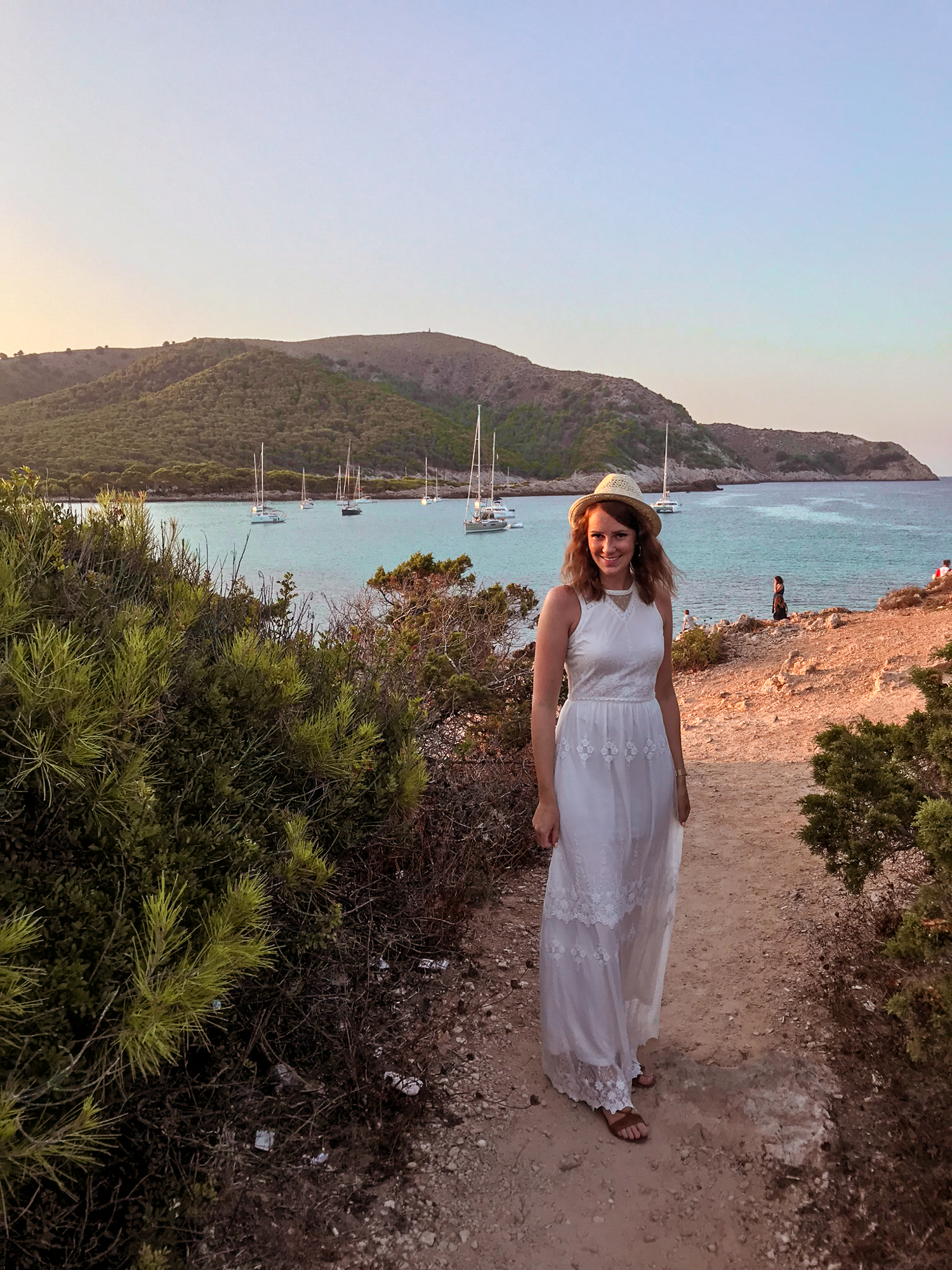 Der Weg dorthin führt nur über eine Landstraße und ist stellenweise etwas holprig – aber machbar und das Parken ist kostenlos. Da der Parkplatz nur begrenzt über Parkplätze verfügt, solltet ihr früh kommen. Vom Parkplatz aus habt ihr nur noch einen kleinen Fußweg von 2-3 Minuten vor euch. Der Strand ist sehr groß im Verhältnis zu den Besuchern. Wir haben dort den Nachmittag verbracht und waren sehr positiv überrascht. Wenige Touristen und Inselbewohner, viel Platz für uns. Die Bucht ist wirklich sehr schön und ihr könnt sogar auf Entdeckungstour gehen, da die Bucht auf der einen Seite von Felsen und auf der anderen Seite von einer hügelartigen, grün bewachsenen Landschaft umgeben ist. Wenn ihr an der rechten Seite der Bucht über die Felsen klettert oder auf der linken Seite auf den Hügel wandert, habt ihr einen super Ausblick von oben über die Cala Torta und könnt sehen, welche Landschaft sich neben der Bucht befindet.