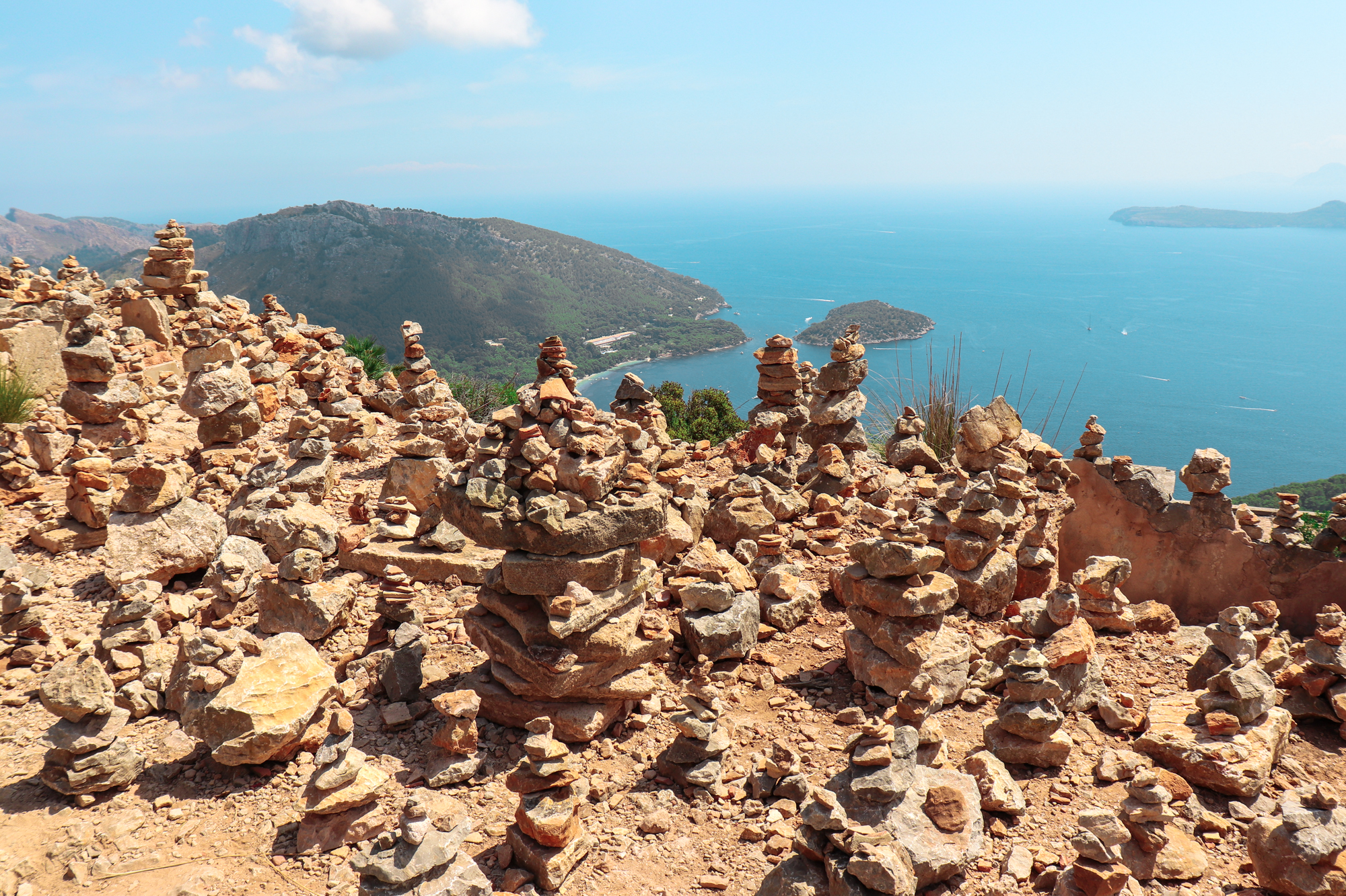 Ein Geheimtipp für euch: Wenn ihr vom Parkplatz des Mirador es Colomer aus in die gegenüberliegende enge Straße einbiegt und hoch fahrt oder wandert, gelangt ihr zum Talaia d’Albercutx und damit zu einem weiteren tollen Aussichtspunkt, an dem kaum Menschen sind, oh Wunder. Macht auf jeden Fall einen kleinen Abstecher dort hoch, ihr werdet auf dieser Seite von einem mega 360-Grad-Panorama belohnt.