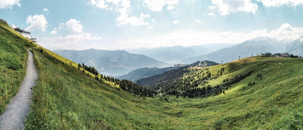 Oben angekommen werdet ihr mit einem tollen rundum Panorama belohnt. Es macht total viel Spaß, auf der Schmittenhöhe zu wandern.