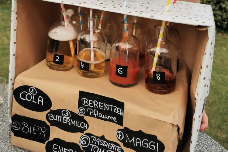 DIY-Spiel „Probieren oder verlieren -Flüssigkeiten erraten“
